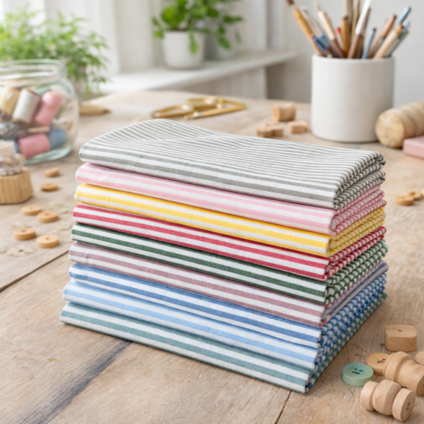 Il 100% Cotone Righe 3MM Tinto in Trama Vintage Melange è un tessuto naturale dal carattere elegante e senza tempo ✨