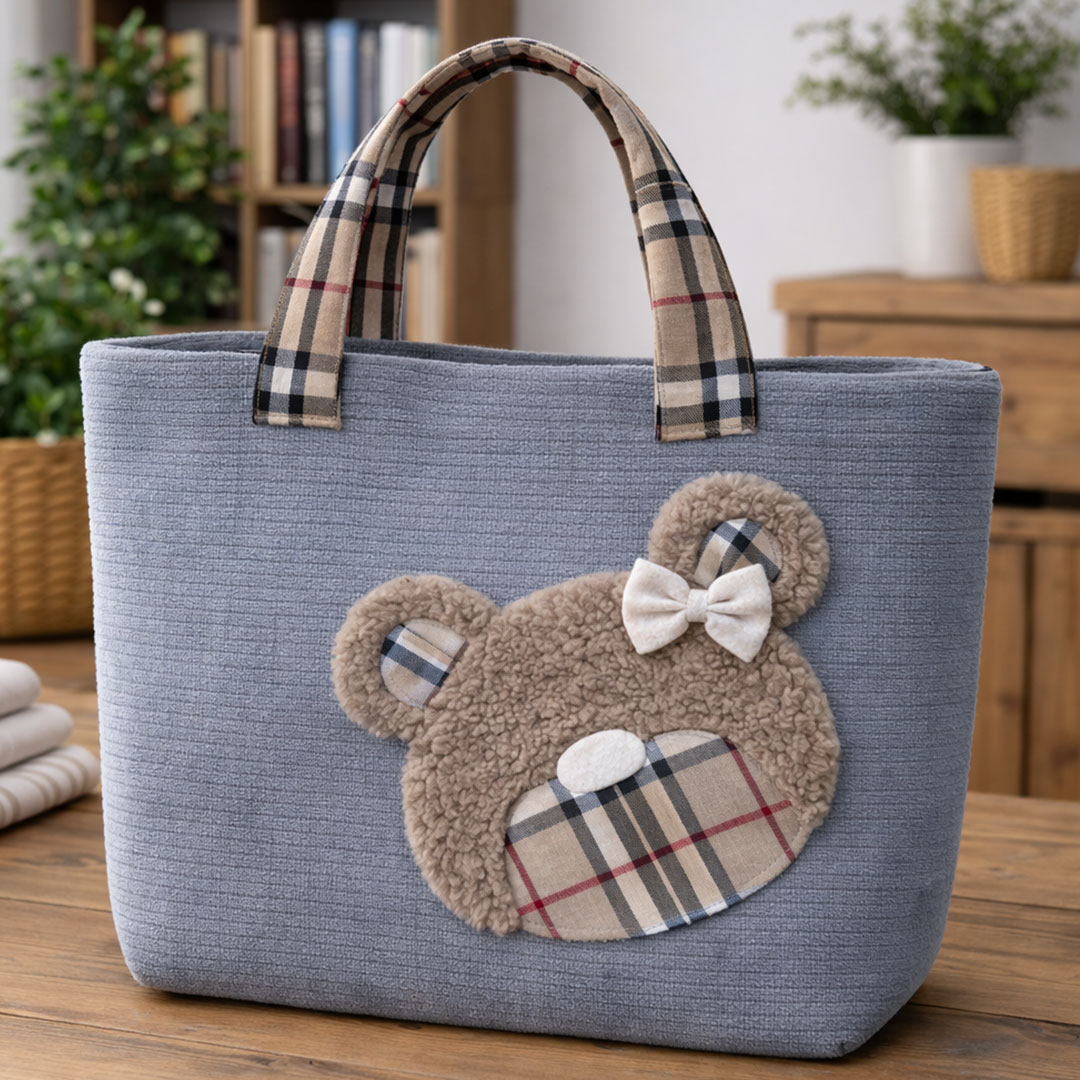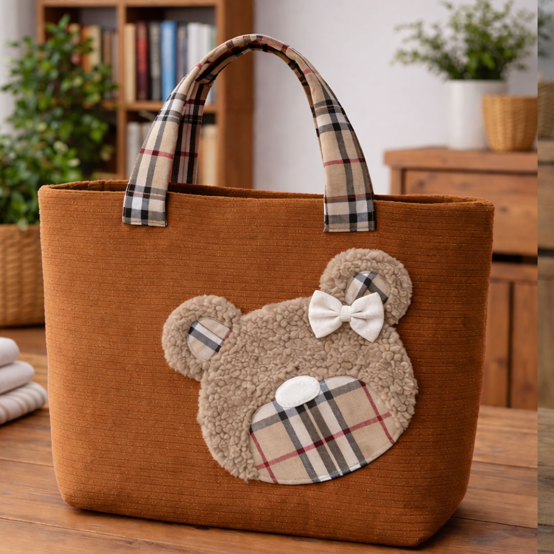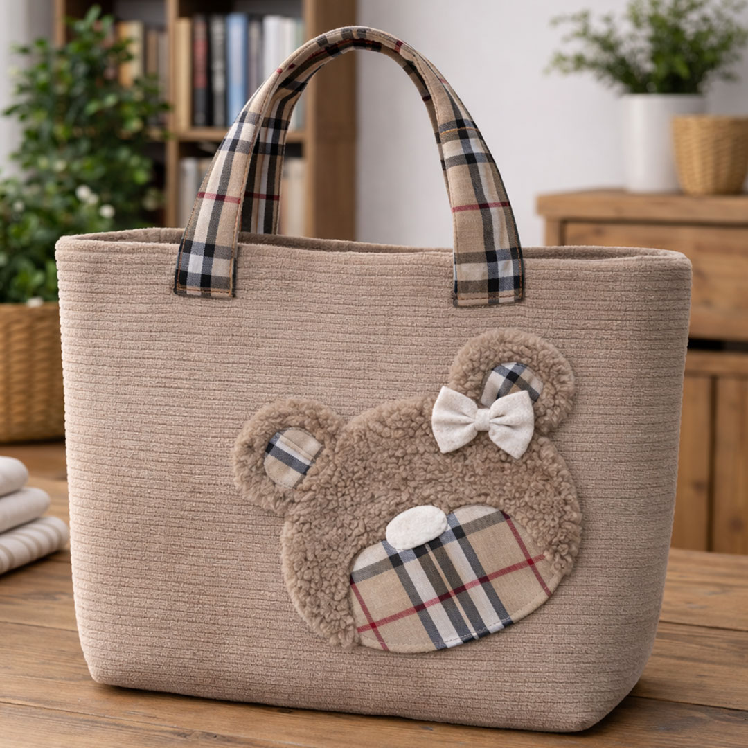 La Borsa Teddy Fashion in velluto a coste – CRKIT619 è una shopper morbida e capiente, con il musetto orsetto in pellicciotto che la rende subito unica e super tenera. Il corpo borsa è realizzato con il Velluto a Coste Morbidoso CRTES006, abbinato al tartan CRTES009 e al pellicciotto ricciolino CRTES001 per l’applicazione teddy.