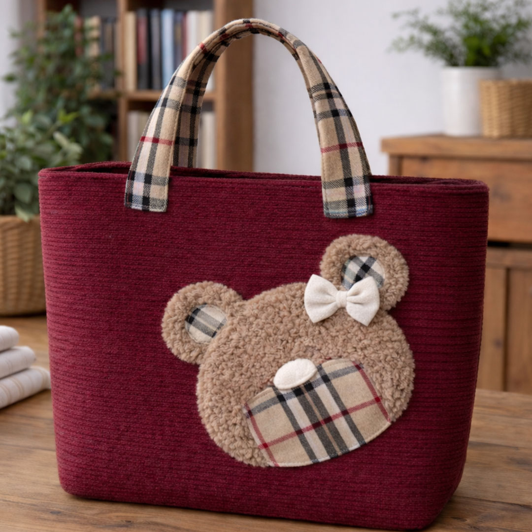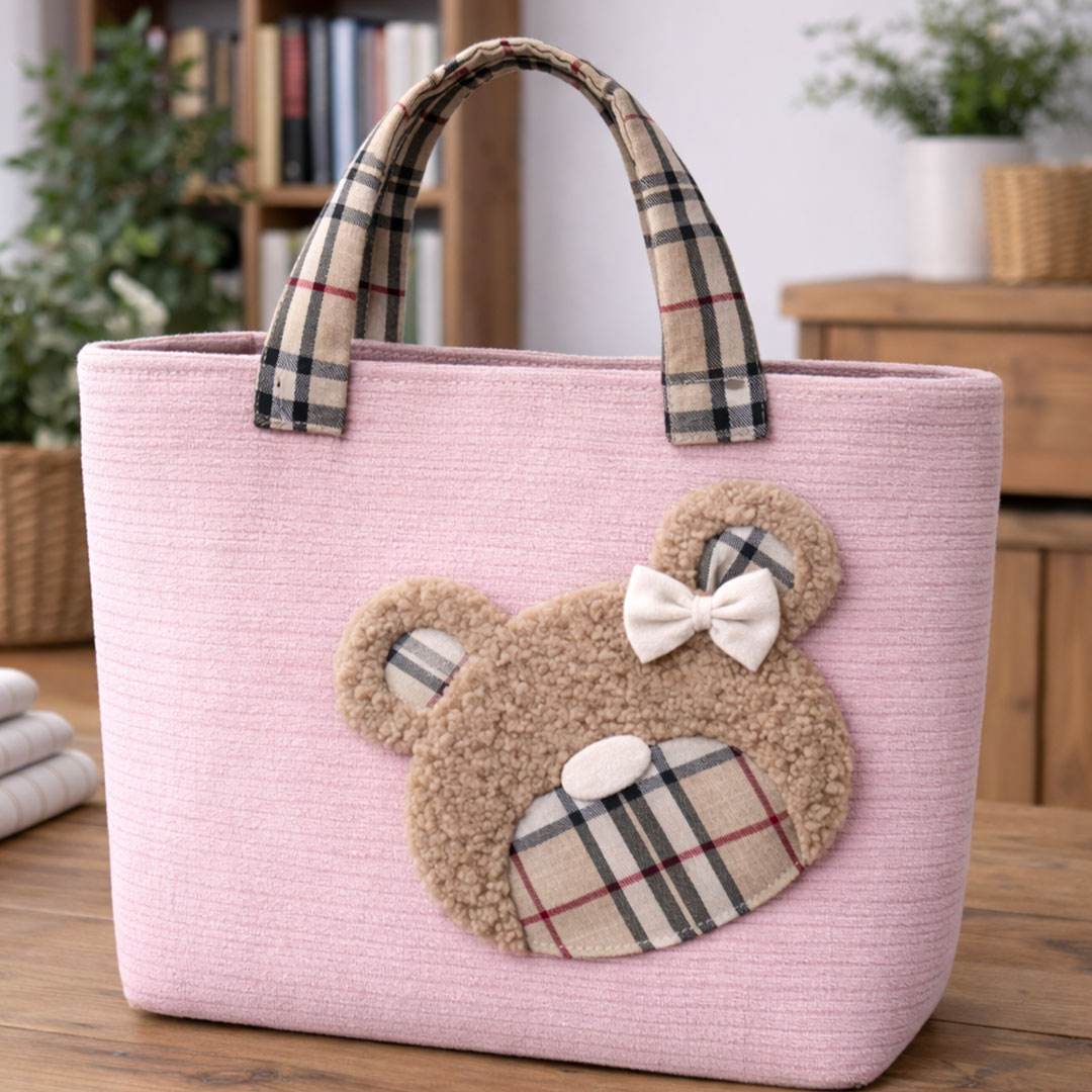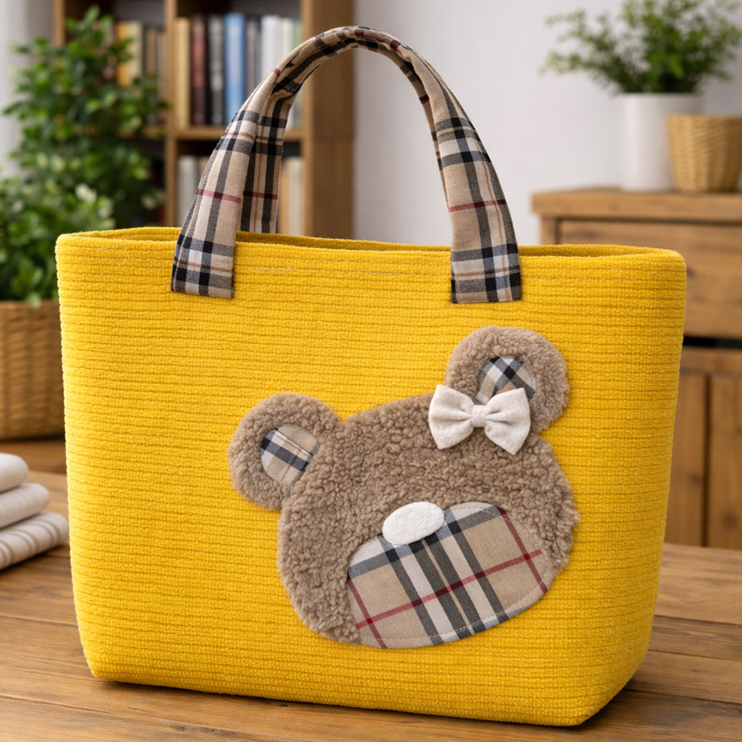 La Borsa Teddy Fashion in velluto a coste – CRKIT619 è una shopper morbida e capiente, con il musetto orsetto in pellicciotto che la rende subito unica e super tenera. Il corpo borsa è realizzato con il Velluto a Coste Morbidoso CRTES006, abbinato al tartan CRTES009 e al pellicciotto ricciolino CRTES001 per l’applicazione teddy.