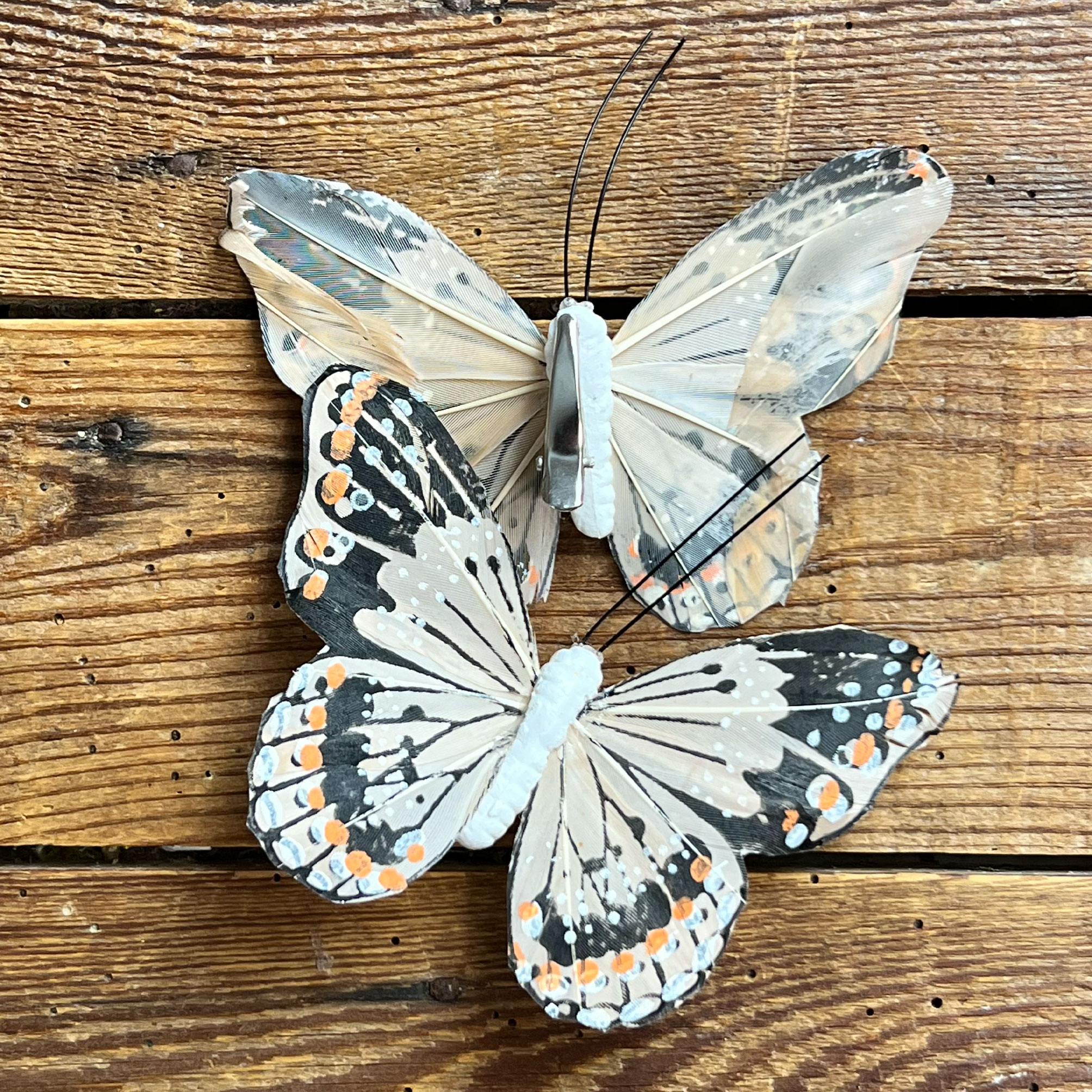 🦋 La Farfalla con clip 15 cm è una decorazione di grande fascino, pensata per dare alle tue creazioni un tocco leggero, poetico e raffinato. Il suo dettaglio più speciale è la lavorazione: è infatti realizzata con piume decorate a mano, un particolare che la rende ancora più preziosa, scenografica e ricca di personalità.