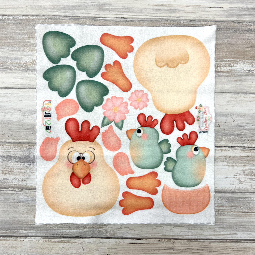 - 1 Foglio 25×22.5 cm Pannolenci morbidoso Stampato Deco Gallina e Pulcini (CRPMS149)