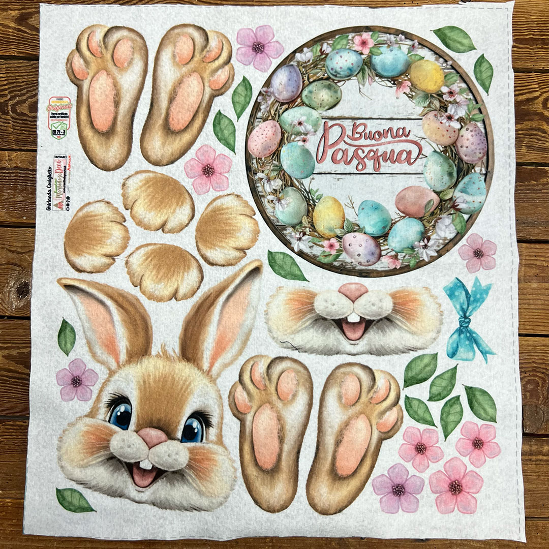 È un Pannolenci Morbidoso disegnato da Marta e pensato come progetto completo: componi la ghirlanda, aggiungi la scritta “Buona Pasqua” e costruisci il coniglietto tridimensionale per un effetto 3D che fa innamorare al primo sguardo.