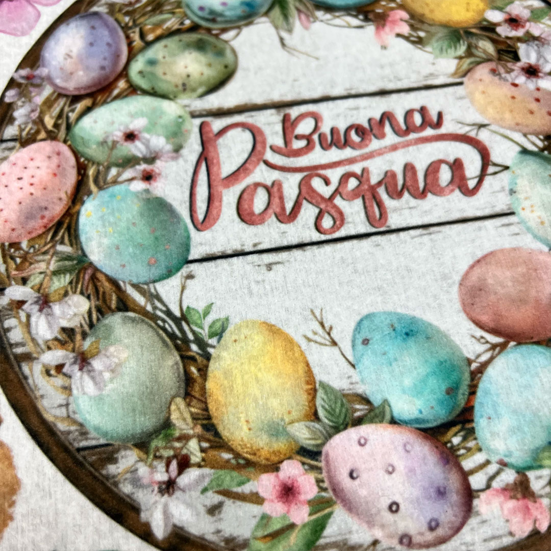 Soggetto: Ghirlanda “Buona Pasqua” + Coniglietto 3D (disegnato da Marta)