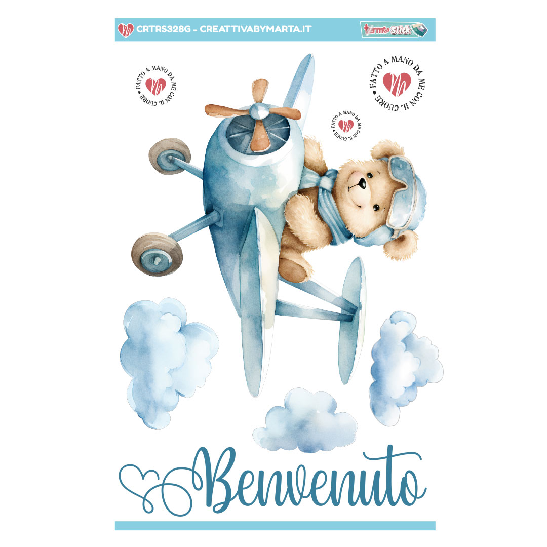 Il Termostick CRTRS328 รจ pensato per creazioni baby, nascita e infanzia, con una grafica ad acquerello delicata e una frase coordinata โBenvenutoโ giร perfettamente abbinata 💫